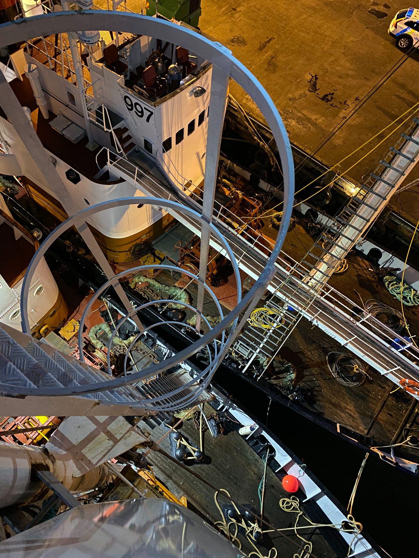 From the crow’s nests, the cold bit harder with every hour without water, warm clothes, or a phone. Smoke from a neighbouring vessel made them dizzy. They could hear each other only about forty per cent of the time, shouting across the wind or using hand signals when their voices failed.