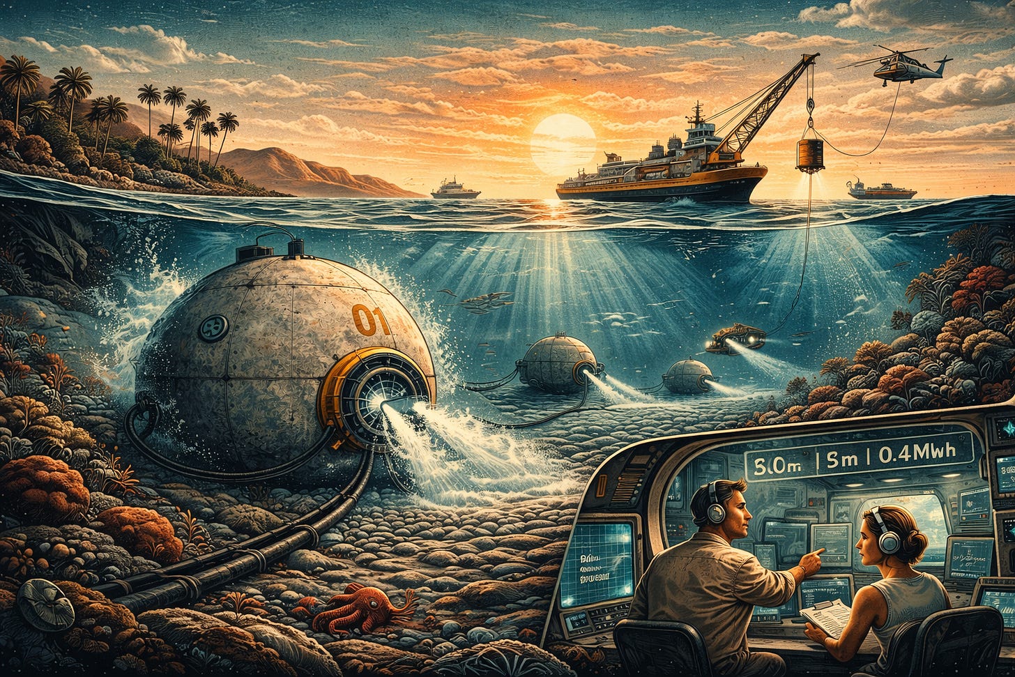 The logic of the design is what makes it compelling. The deeper the water, the greater the pressure, and the more energy each sphere can store. The spheres can be manufactured on shore and towed to site. They require no land, generate no emissions in operation, use no rare materials, and sit out of sight on the seabed. If the California trial succeeds, the technology could pair directly with offshore wind farms, storing their surplus output within reach of the turbines that produce it.