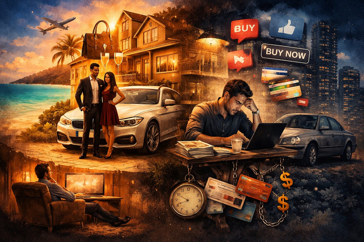 Imagine it is 1995. Your neighbour pulls into the driveway in a brand-new BMW. The street glances over… admiration, envy, maybe a flicker of pride that one of their own is doing well. The walls are thin, and an hour later you can hear the argument through the plaster. The car was never the whole story.