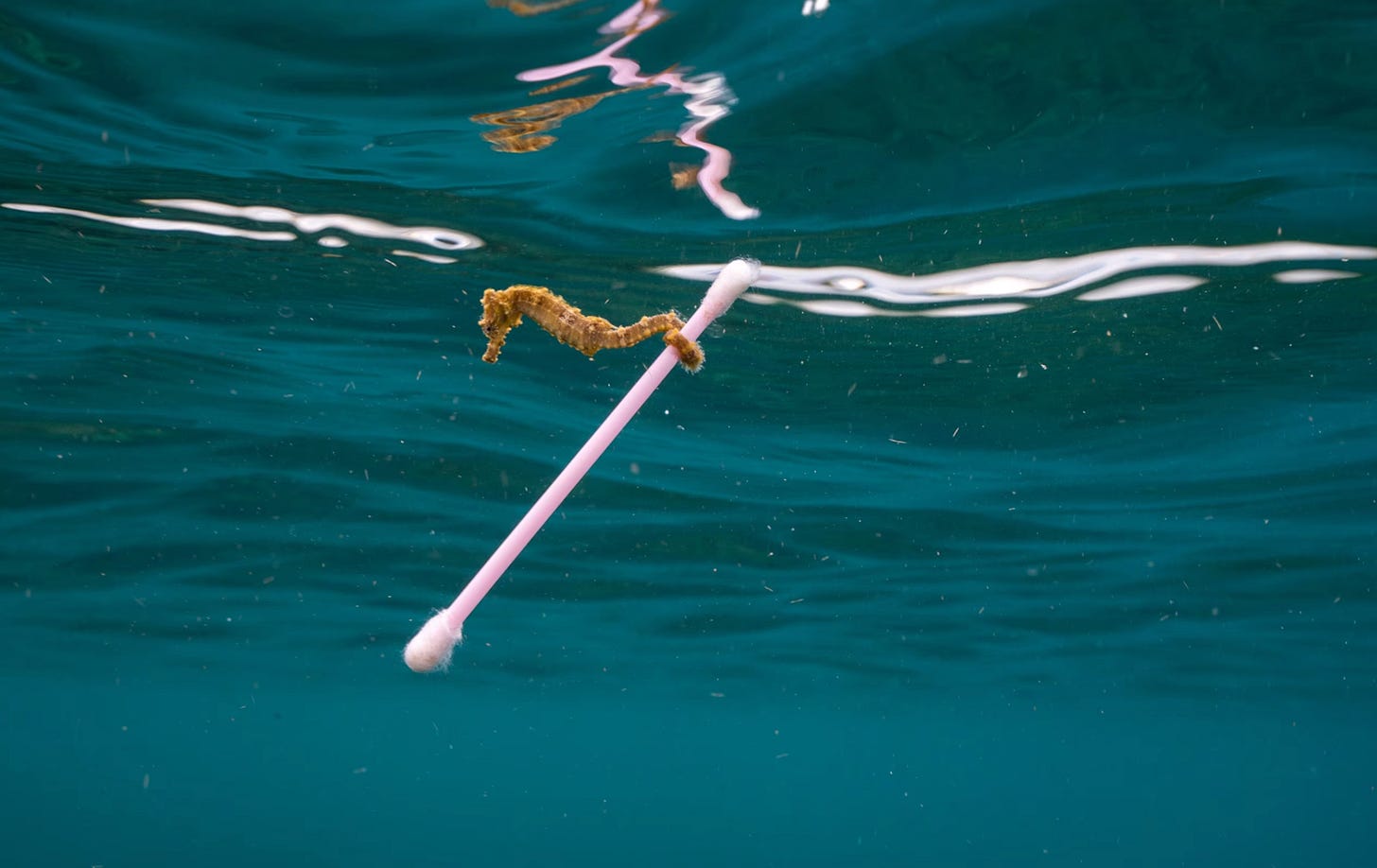 Now, a seahorse wraps its tail around a cotton bud, thinking it’s seaweed. A turtle lays its eggs in shredded rope. A fish guards its nest under a plastic crate.